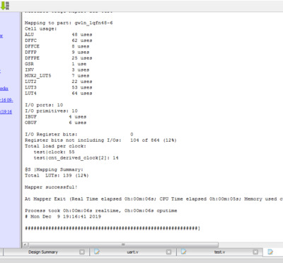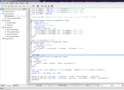 Худо-бедно проект заработал, но не стабильно. Очень долго я не мог понять, зная, что на Xilinx и Altera все работало, что же происходит?! Не обращал внимание на то, что синтезатор подсказывает мне в чем дело, так как смирился с тем фактом, что IDE не видит констрейнта на клок, а значит, думал я, не понимает, что остальные клоки в модулях - производные, вот и жалуется на них! Таким образом, я прохлопал сообщение, что использую "загейтованный" клок в ресивере. Сделал необходимое в таких случаях - ушло замечание при синтезе и появилась стабильность приема по UART.