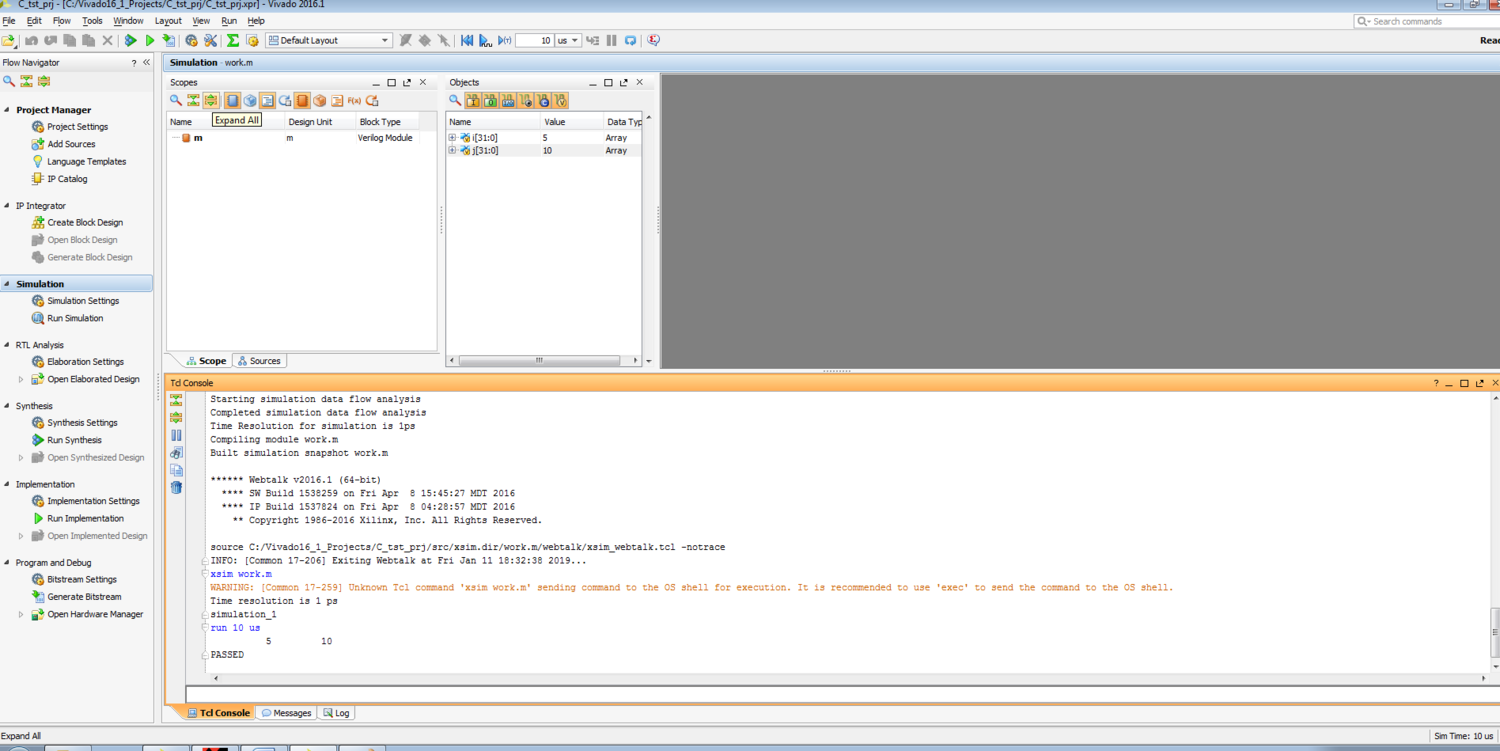 Done linking: "<Путь к папке проекта>/C_tst_prj/src/xsim.dir/xsc/dpi.so"