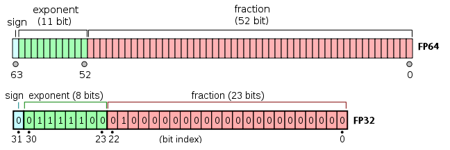 Зачем же боксируют между собой значения NaN и что им друг от друга нужно? Давайте вспомним значения битовых полей в представлении чисел в формате IEEE-754 [рассмотрим 32/64-битные случаи].