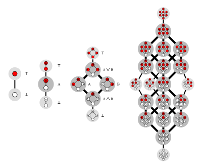 Основным предметом изучения чисел Дедекинда являются так называемые монотонные булевы функции. Ван Хиртум объясняет: "В принципе, вы можете представить монотонную булеву функцию в двух, трех и бесконечных измерениях как игру с n-мерным кубом. Вы балансируете куб на одном углу, а затем окрашиваете каждый из оставшихся углов либо в белый, либо в красный цвет. Есть только одно правило: вы никогда не должны располагать белый угол над красным. Это создает своего рода вертикальное красно-белое пересечение.