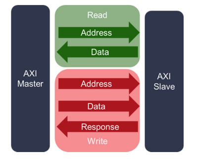 AXI4-Lite интерфейс может одномоментно использоваться только для чтения (используя 2 канала чтения) или только для записи (используя 3 канала записи), как это видно из диаграммы выше.