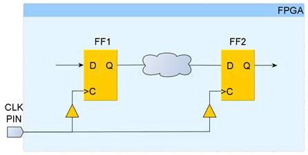 Рассмотрим каким образом Vivado выполняет временной анализ пути между двумя триггерами внутри FPGA.