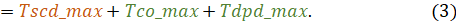 В предыдущем уравнении учитывается, что данные должны прийти на время Tsu раньше защелкивающего фронта. Таким образом, чтобы выполнялось требование на максимальное время распространения (Setup), данные должны дойти до конца пути не позднее времени Tdr.