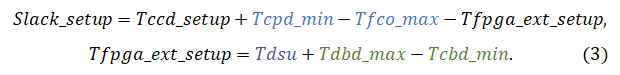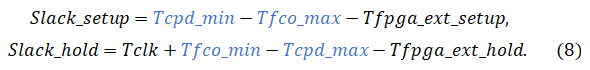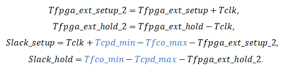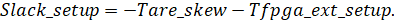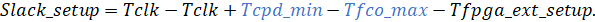 Объединим все слагаемые, описывающие задержки вне FPGA, в одну переменную и получим выражение для Slack при анализе по Setup: