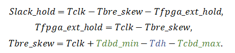 Объединим все задержки вне FPGA в одну переменную и получим окончательное выражение для Slack при анализе по Hold: