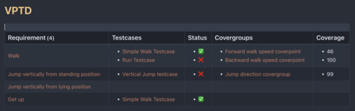 Таблицу на изображении ниже я буду называть привычным для меня термином VPTD, Verification Progress Tracking Document. В ней перечислены все требования и чем и как они покрыты.