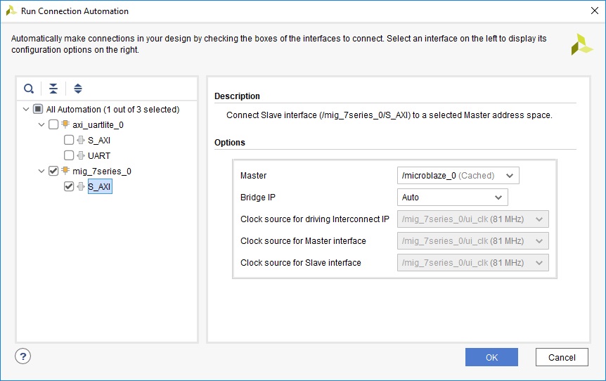 Рисунок 22 – Run Connection Automation для кэша MicroBlaze