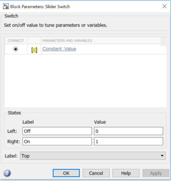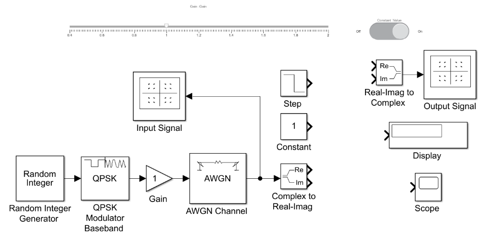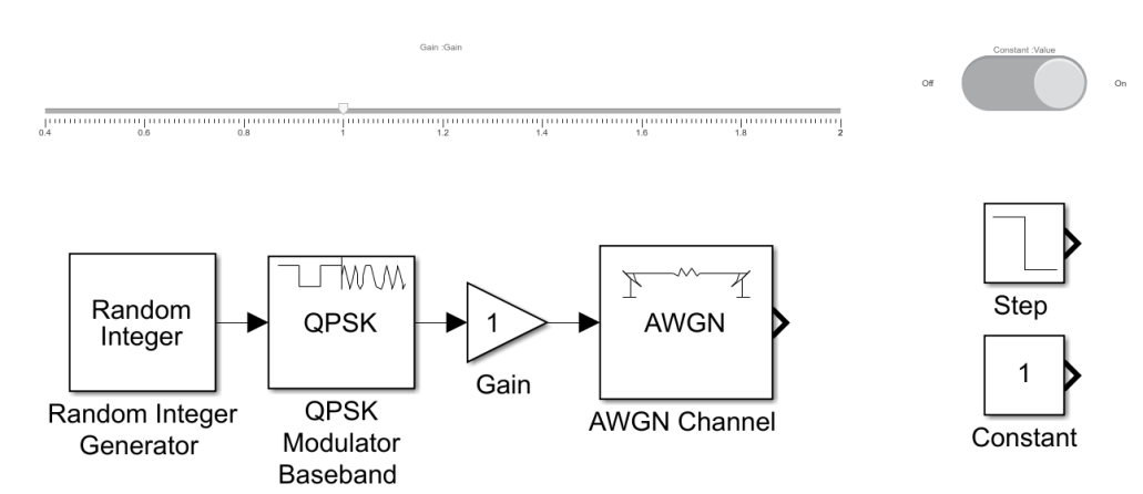 - · Switch – привязывается к блоку Constant и дает возможность интерактивно включать и выключать АРУ.