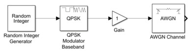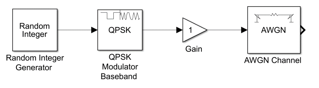 Для создания QSPK сигнала и имитации канала используются следующие блоки: