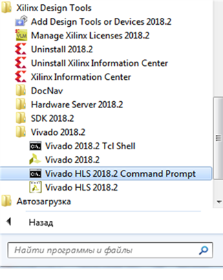 Рисунок 5 – Запуск командной строки Vivado HLS