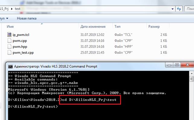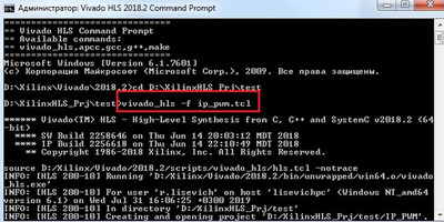 3. Пишем в консоль vivado_hls -f ip_pwm.tcl (Рисунок 7).