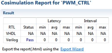 После того, как ко-симуляция закончится, автоматически откроется отчет. Не пугаемся того, что у нас в нём везде нули. Раздел «Latency» показывает, какое количество периодов тактовой частоты необходимо функции для вычисления всех выходных значений – но у нас ничего не вычисляется, а просто значение регистра, задаваемого через AXI, присваивается выходному сигналу. Раздел «Interval» показывает, какое количество периодов тактовой частоты необходимо функции, чтобы она могла принять новые данные на вход.