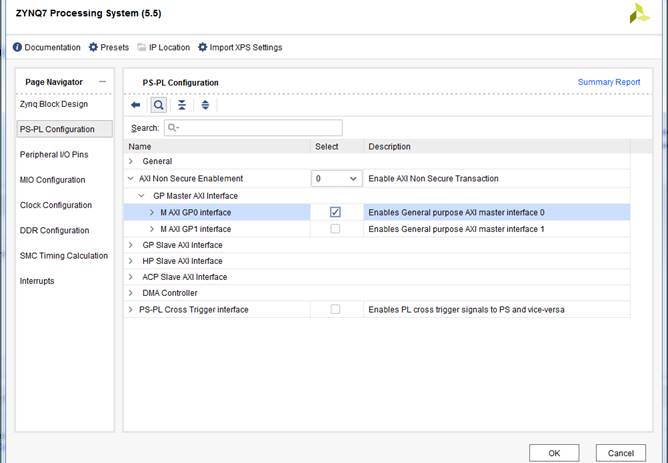 По факту нам нужен только UART, чтобы мы могли принимать и отправлять сообщения. Так же нам нужен AXI GP порт для связи с нашими IP-блоками. Для этого жмем два раза на IP ZYNQ в блок дизайне. В открывшемся окне переходим во вкладку PS-PL Configuration и находим M AXI GP0, отмечаем галочкой (Рисунок 4).