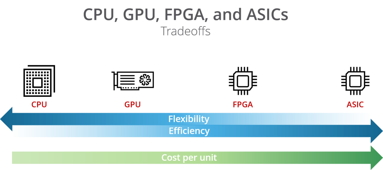 Современные ПЛИС могут работать очень быстро – например, с частотой в сотни мегагерц. Вы можете подумать: "но, мой процессор Intel работает на гигагерцовой частоте!” Это правда! Однако ваш процессор Intel является "процессором общего назначения" – он делает большое количество вещей довольно хорошо, а не небольшое количество вещей действительно хорошо. ПЛИС позволяют писать массово параллельные реализации алгоритмов, при этом пропускная способность может быть в 10 раз, 100 раз или 1000 раз выше, чем любого процессора на современном рынке.