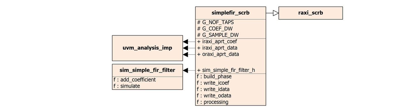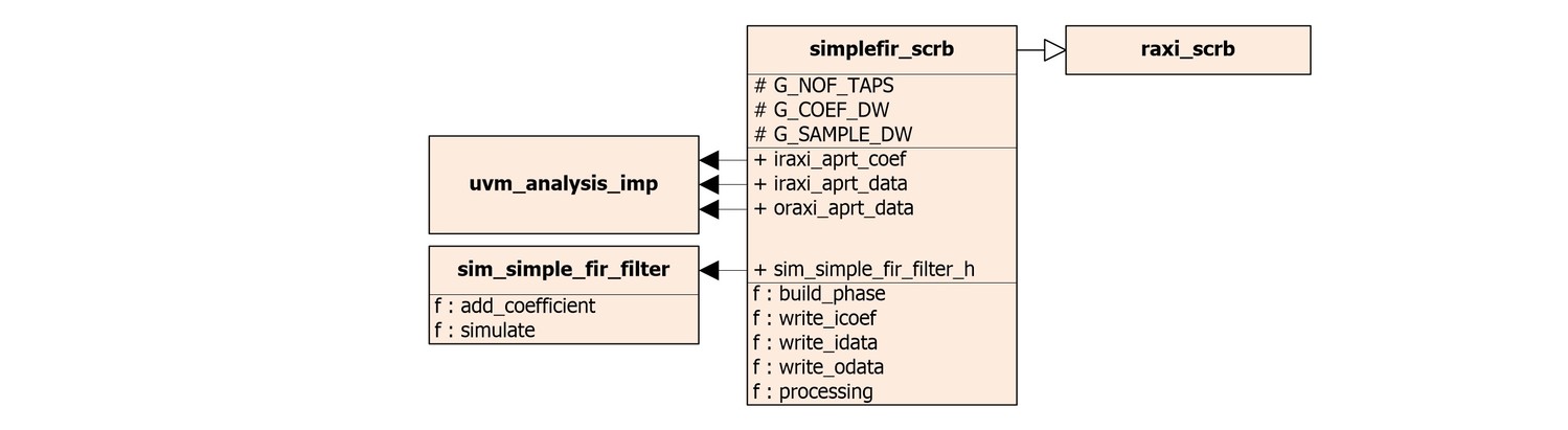 При поступлении транзакции коэффициентов, вызывается функция add_coefficient() класса sim_simple_fir_filter. В результате коэффициенты, загружаемые в тестируемый КИХ фильтр, также загружаются и в эталонную модель.