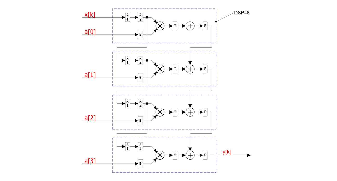 Рисунок 2.3 – КИХ фильтр, модернизированная архитектура на блоках DSP48