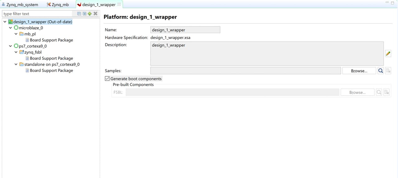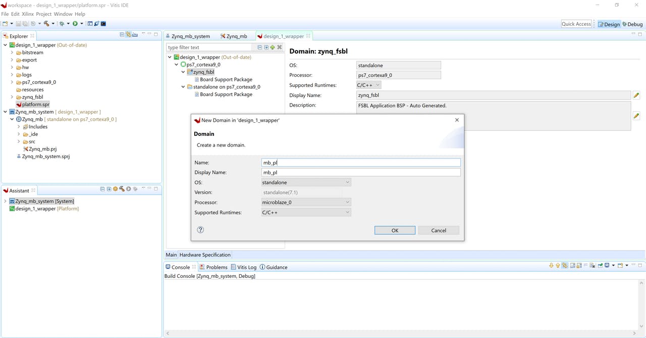 Как только это будет выполнено, под платформой вы увидите два домена - один для Zynq A9, а другой для MicroBlaze.