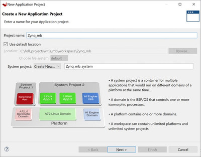 После запуска Vitis первое, что мы хотим сделать, это создать проект приложения. Это также создаст новый системный проект - именно к этому системному проекту мы добавим домены.Первый домен будет создан в платформе автоматически при создании проекта приложения.