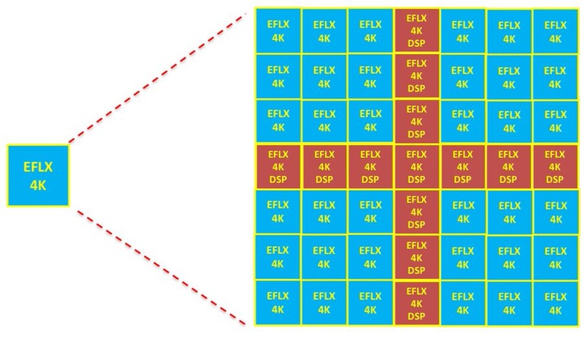 Рисунок 2 eFPGA Flex Logix основана на EFLX 4K, секция, которая поставляется в двух версиях: полностью логическая или в основном логическая с несколькими умножителями (MAC). Источник: Flex Logix