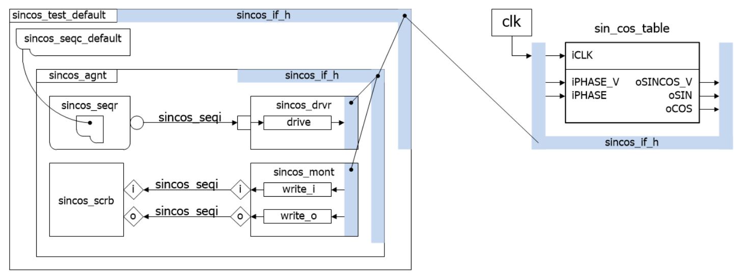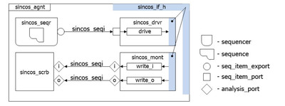 По тактовому сигналу монитор проверяет входную (iphase _ v) значимость интерфейса sincos _ if _ h. Если она не равна нулю, то формируется новая входная транзакция (sincos _ seqi _ i), которая записывается в порт анализа (sincos _ aprt _ i).