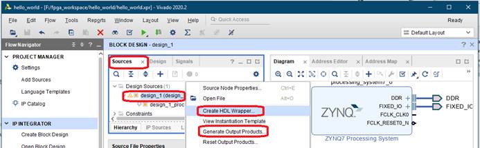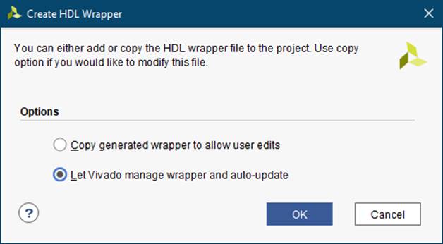 Create HDL Wrapper - cоглашаемся, пусть система обновляет файлы в случае изменения дизайна.