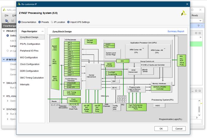 Дважды кликаем по блоку ZYNQ на диаграмме, чтобы перейти в настройки системы ZYNQ