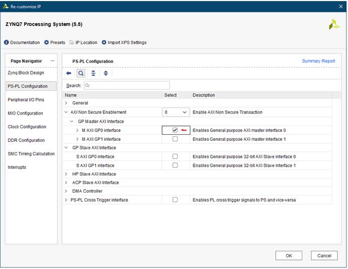 Если в будущих проектах планируется тактировать PL логику от системы ZYNQ в качестве источника, то это можно настроить во вкладке Clock Cinfiguration выход FCLK_CLK0