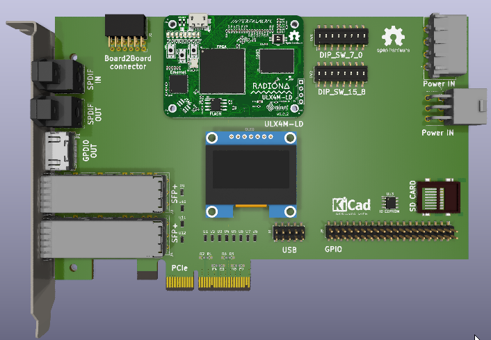 Несущая плата расширяет функционал основного модуля ULX4M, добавляя для него PCIe, 2xSFP+ и другую периферию
